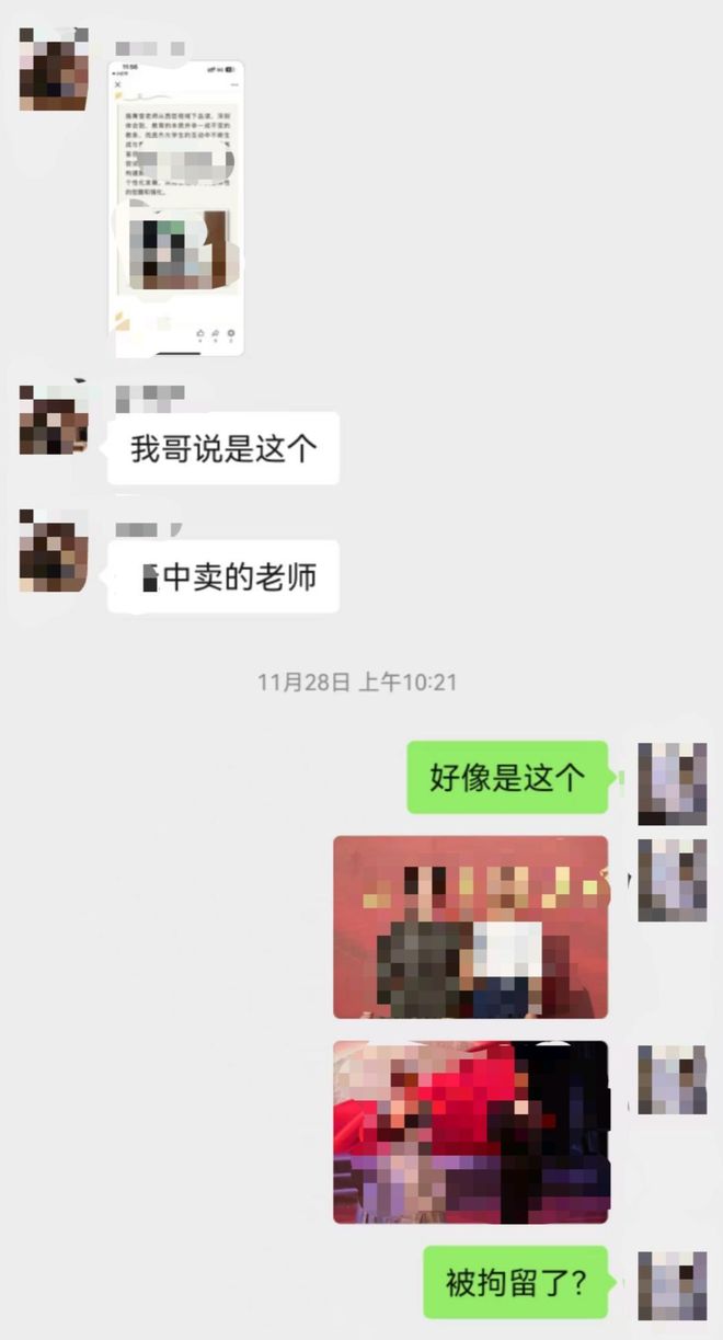 当日傍晚,另一朋友郑某某私信张女士,也谈及这一消息。随后,“仙女下凡”群里3人持续聊到此事,并根据其他来源的消息,认为涉事老师为“申某某”,并发来申某某的活动照片确认。