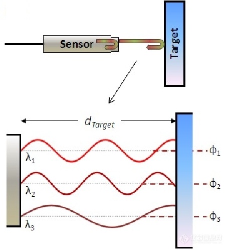 采用单波长干涉测距虽然分辨率可达到纳米级,但是单波长干涉测距是相对测量,且测量时光路不能中断,而多波长干涉能很好解决这个问题。因为在干涉测距中波长就像一把量尺,但如果测量距离大于这把量尺,则需要多次拼接测量。多波长干涉能形成很长的等效波长,使量尺范围大于被测距离,实现绝对距离测量。